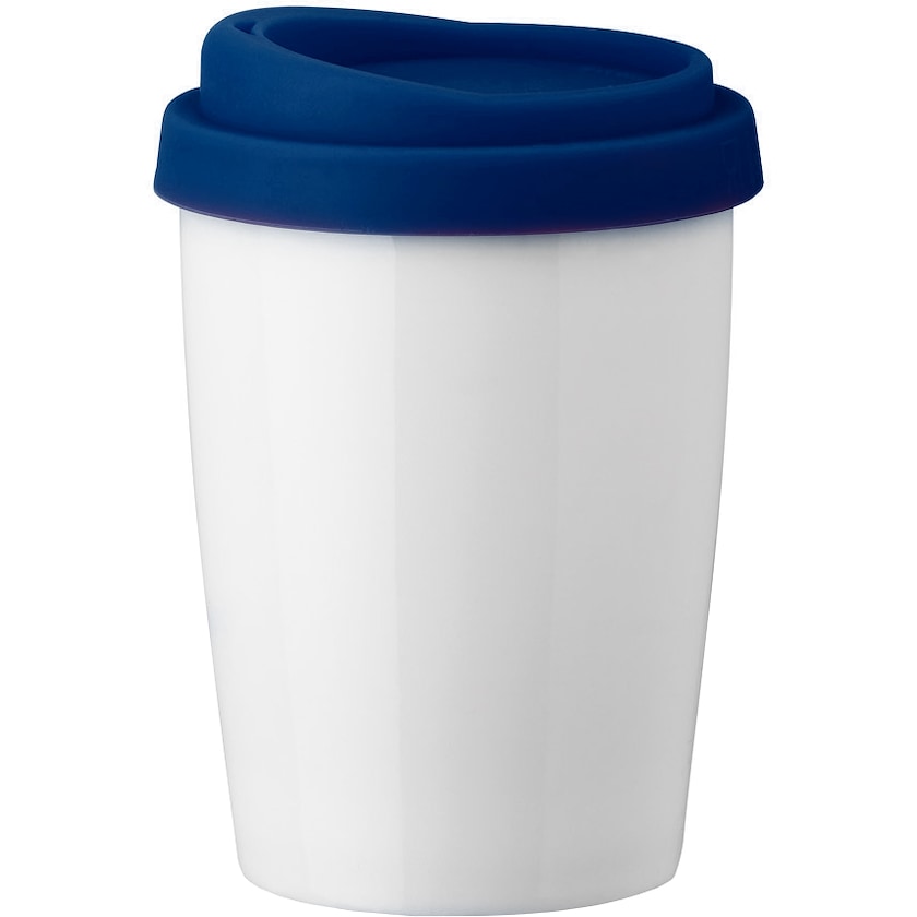 Mug en porcelaine avec couvercle en silicone. Parfait pour vous qui êtes souvent en déplacement!