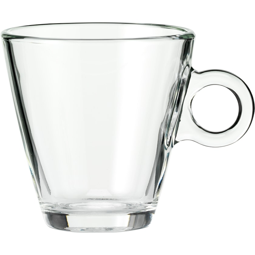 Grand mug en verre trempé de haute qualité. Le mug convient parfaitement pour le thé ou le café. Fabriqué en Italie. Le marquage se fait par gravure laser.