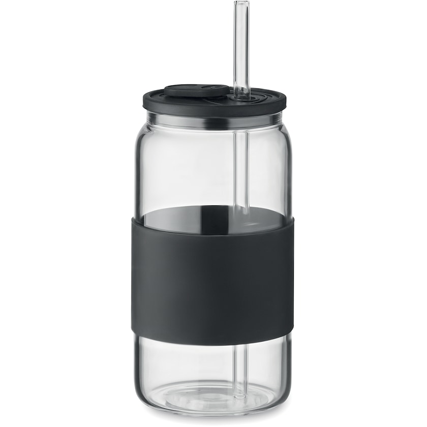 Mug en verre avec couvercle et anse en silicone. La tasse en verre, y compris la paille, est fabriquée en verre borosilicaté durable.