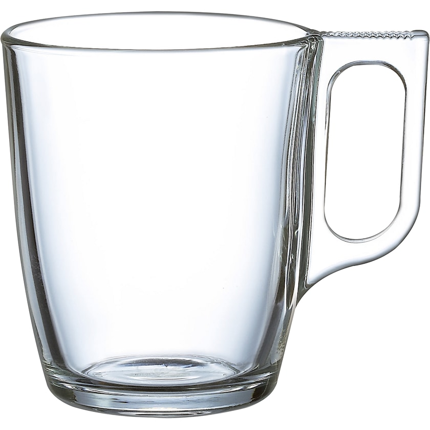Mug en verre avec anse caractéristique. Fabriqué en verre trempé de haute qualité, idéal pour le café et le thé. Compatible lave-vaisselle et micro-ondes. Fabriqué en Europe.
