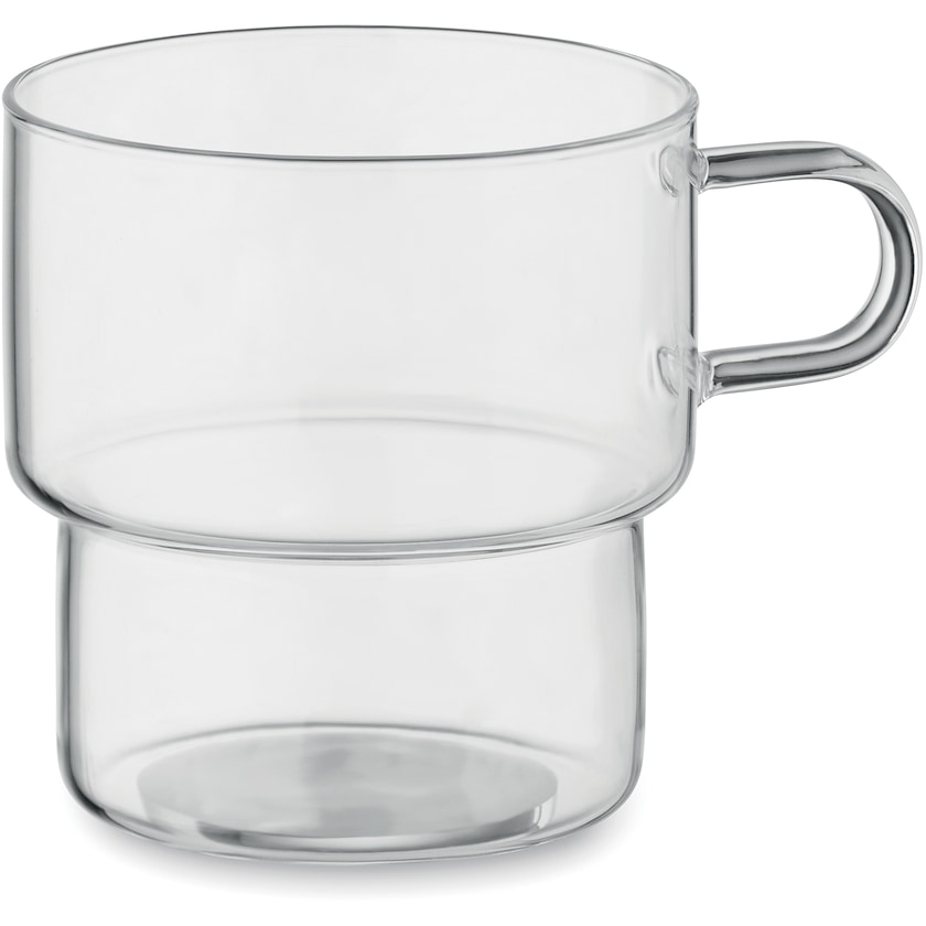 Tasse en verre empilable en verre borosilicate durable. Parfait pour le café et le thé.