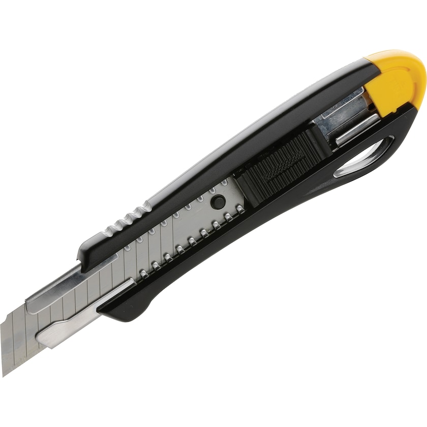 Cutter en plastique ABS recyclé certifié RCS. Les lames sont de type SK4 et peuvent être remplacées si nécessaire. Trois lames sont incluses. Livré emballé individuellement dans une boîte en carton de couleur naturelle en papier certifié FSC.