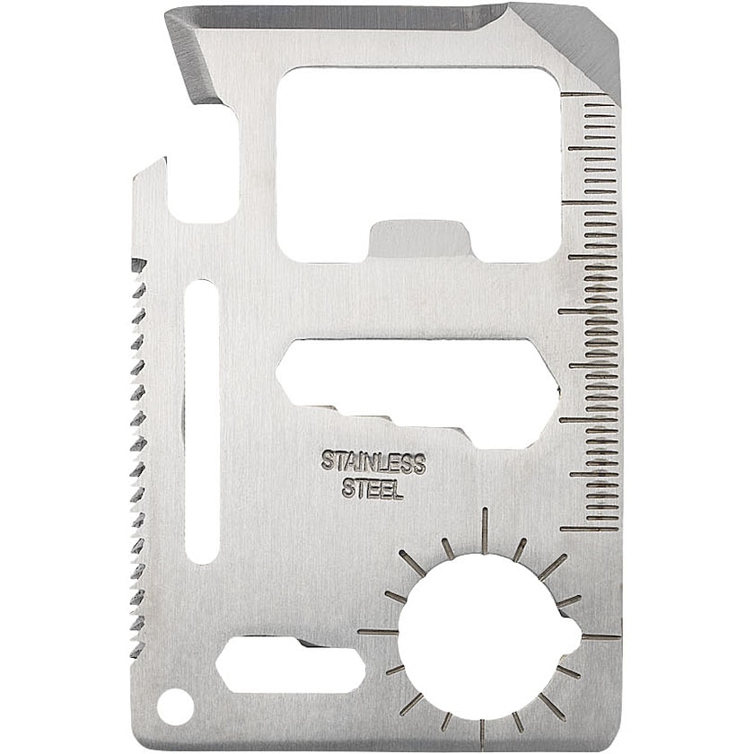 Carte multi-outils en acier inoxydable avec 15 fonctionnalisés. La carte est livrée dans un bel étui en cuir synthétique.