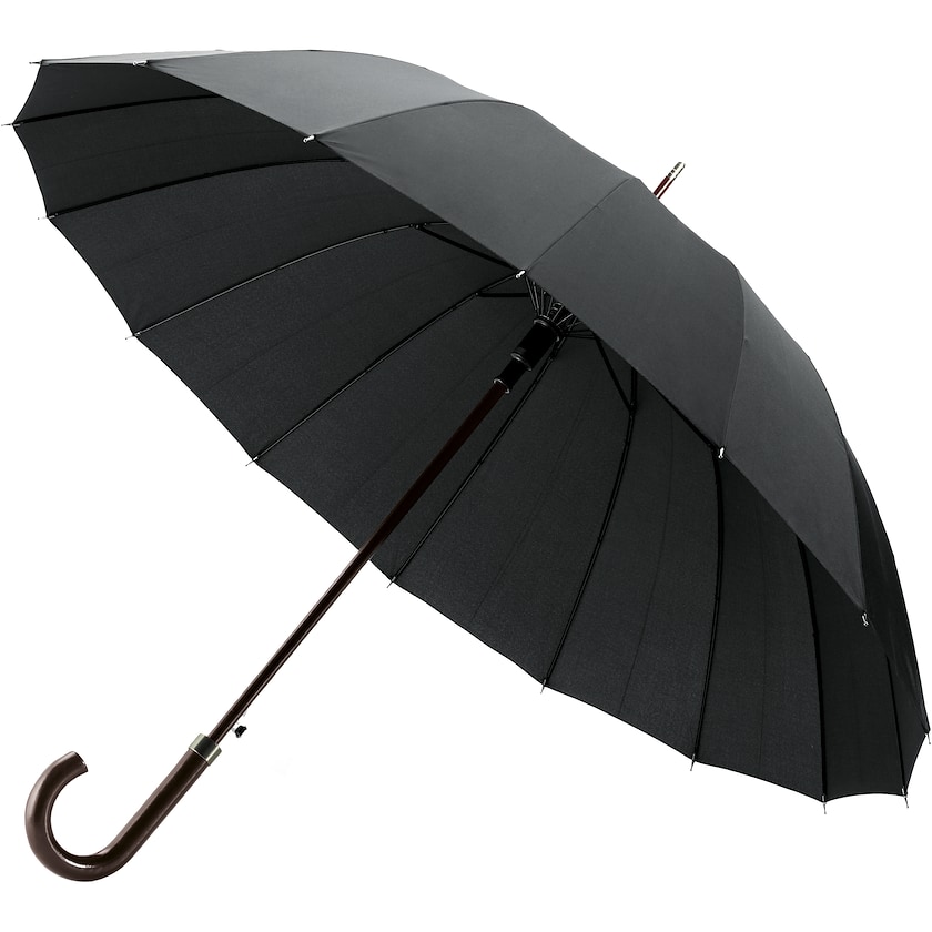 Parapluie automatique 16 panneaux. Le parapluie est équipé d'une belle poignée en bois. Grâce à ses nombreux panneaux, le parapluie est extra stable et durable.