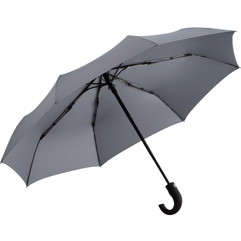 Parapluie au design classique avec poignée courbe. Le parapluie est à ouverture et fermeture automatique, avec 3 sections. L'armature est renforcée pour résister à des vents violents. La poignée possède une surface soft-touch agréable.