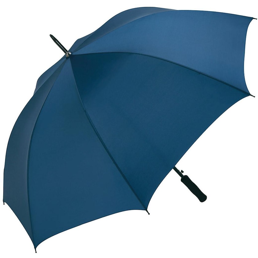Parapluie de golf anti vent à un prix attractif. Les baleines sont en fibres de verre, le manche en acier galvanisé. La poignée est confortablement caoutchoutée.