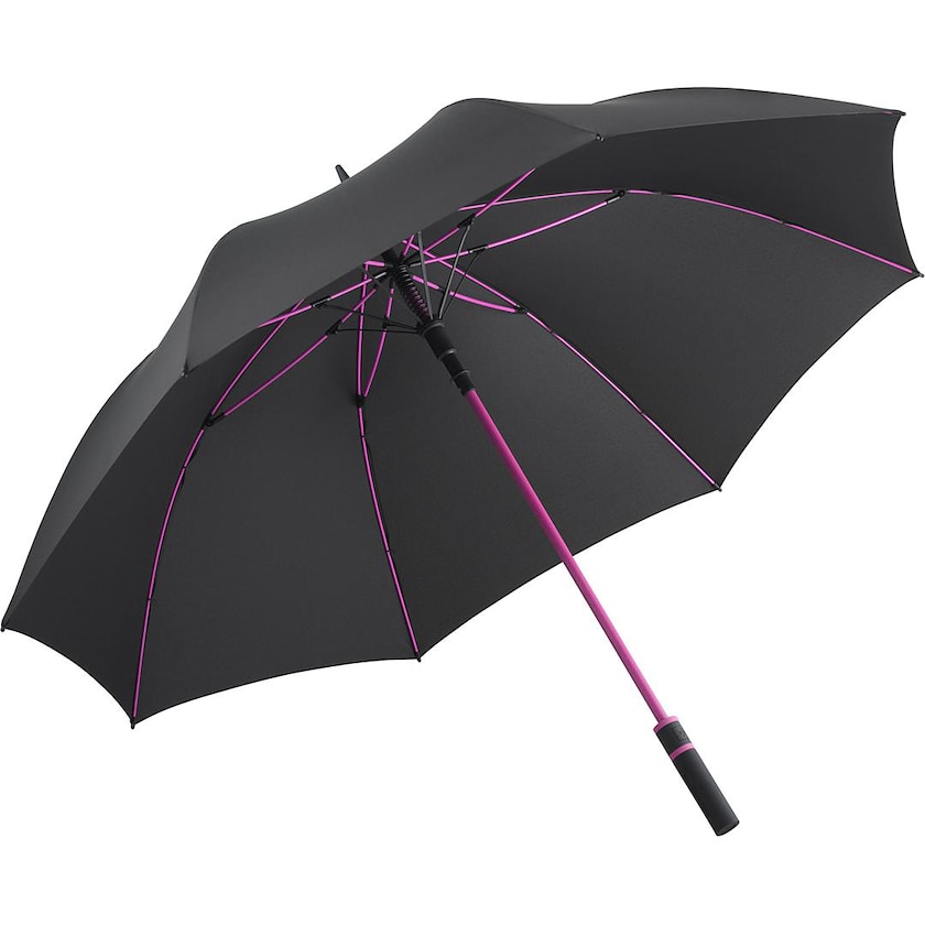 Parapluie de golf anti vent aux détails de couleur vive. Les baleines sont en fibre de verre, le manche, en acier robuste et le tissu est en polyester recyclé. Les baleines de couleur vive et le manche du parapluie donnent à ce parapluie un caractère certain.