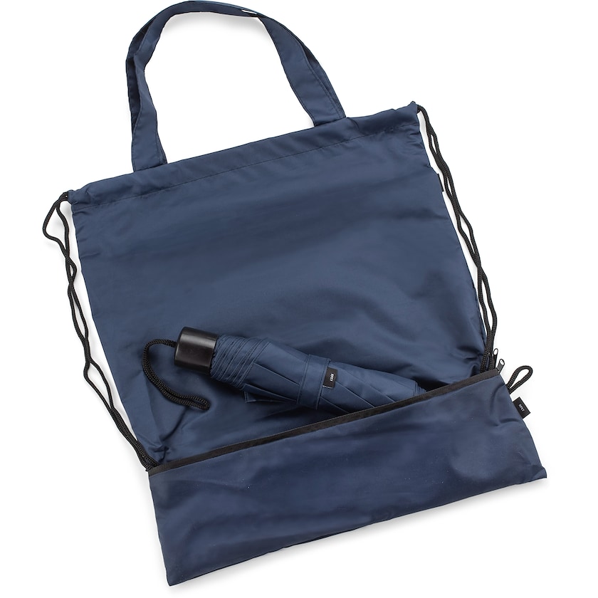 Set écologique comportant un parapluie et un sac tissu. Le parapluie et le sac en tissu sont fabriqués en rPET, c'est-à-dire en bouteilles PET recyclées. En bas du sac en tissu se trouve une poche de rangement pour le parapluie. Lorsque le sac en tissu n'est pas utilisé, il peut être plié pour prendre un minimum de place. Le prix de la personnalisation fait référence à une impression soit sur le parapluie, soit sur le sac en tissu. Le sac en tissu fait 41 x 37 cm et peut supporter un poids maximal de 3 kg. Le parapluie est à ouverture manuelle.