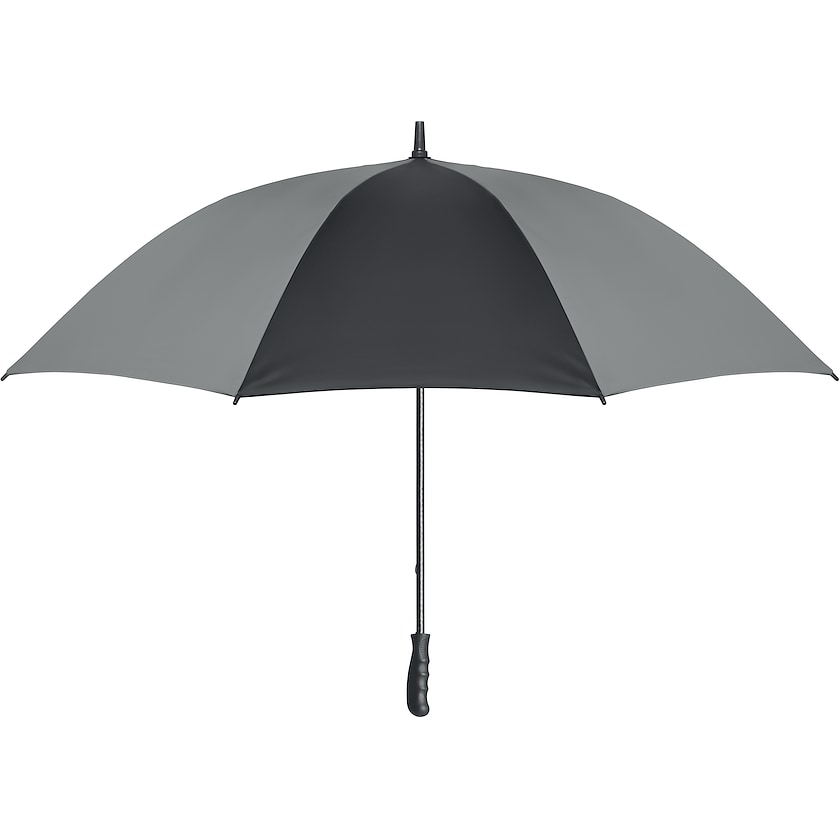 Parapluie avec quatre panneaux réfléchissants. Le cadre, les baleines et la barre sont en fibre de verre. La poignée a une finition en caoutchouc.