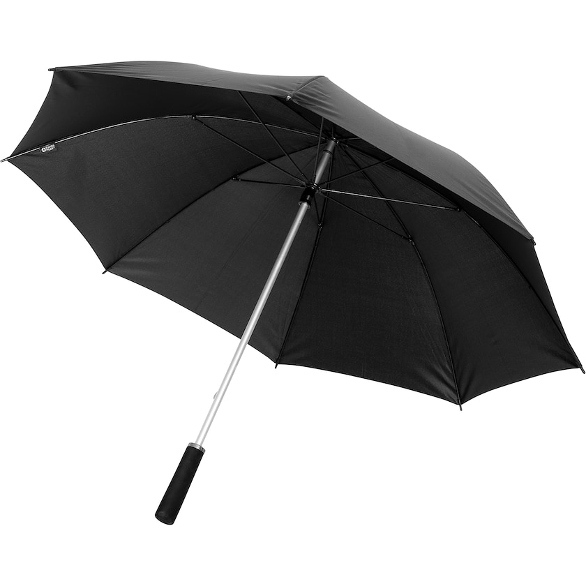 Parapluie anti-vent ultra léger en tissu écologique. Le manche du parapluie est en aluminium, avec des baleines en fibres de verre. Le tissu est en polyester recyclé.