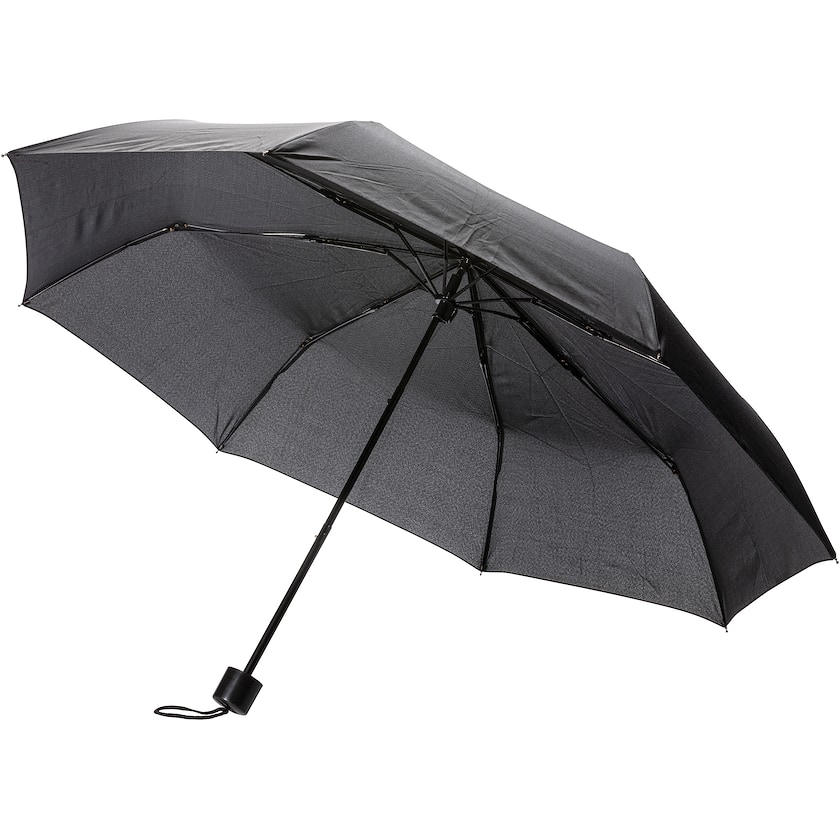 Parapluie unique dont l'étui de rangement peut être déplié en un sac à provisions. Le parapluie possède un manche en métal et des baleines en fibres de verre.
