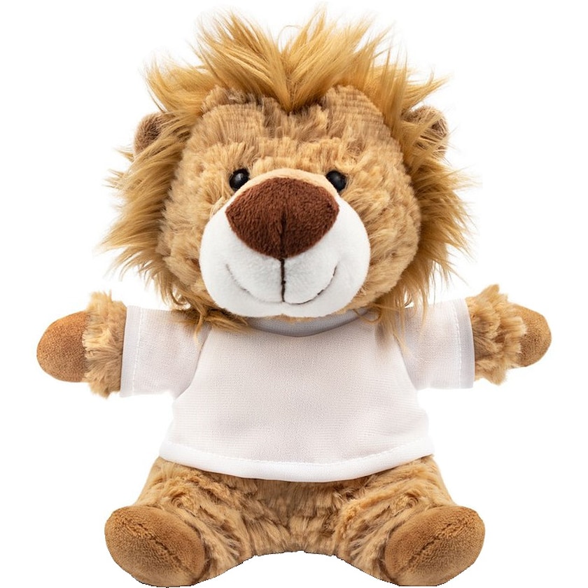 Un lion à la fois doux et tendre. L'impression se trouve sur le t-shirt blanc. Le t-shirt est livré séparément de la peluche.