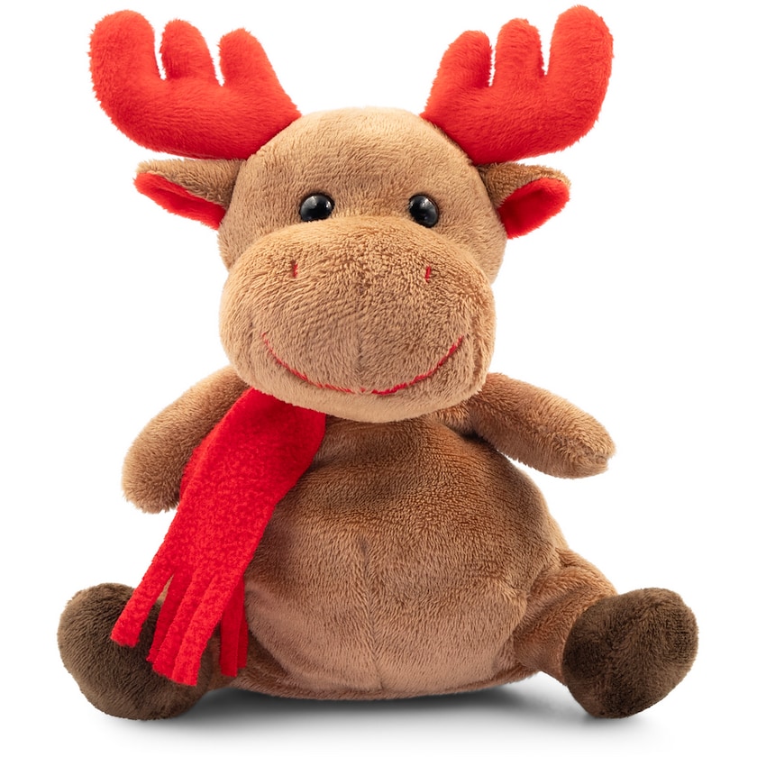 Mignon petit renne avec une serviette rouge. Les boules internes permettent au renne de se tenir en position assise plus facilement.