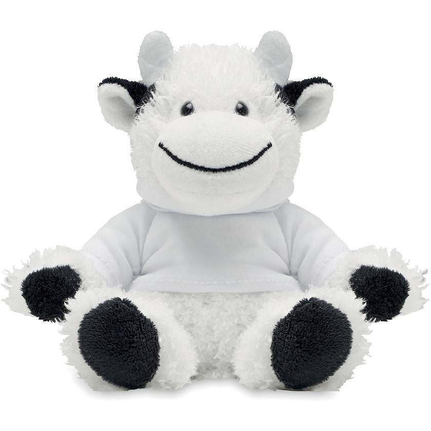 Adorable vache avec un hoodie blanc. La personnalisation est réalisée sur le hoodie. Parfait pour les enfants qui aiment les vaches.