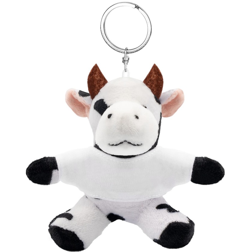 Petite peluche en forme de vache. La peluche est équipée d'un anneau porte-clé. Le T-shirt est livré séparément.