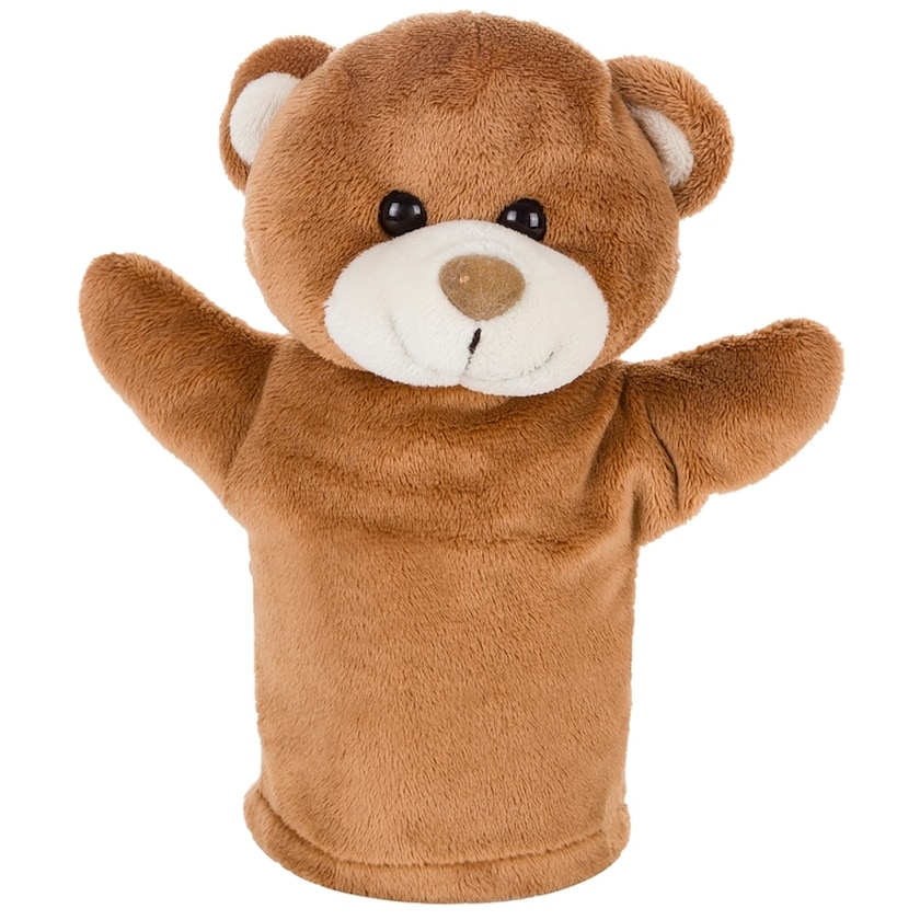 Marionette d'ours en peluche. La personnalisation est réalisée sur la poitrine de l'ours. Un beau cadeau pour enfants créatifs.