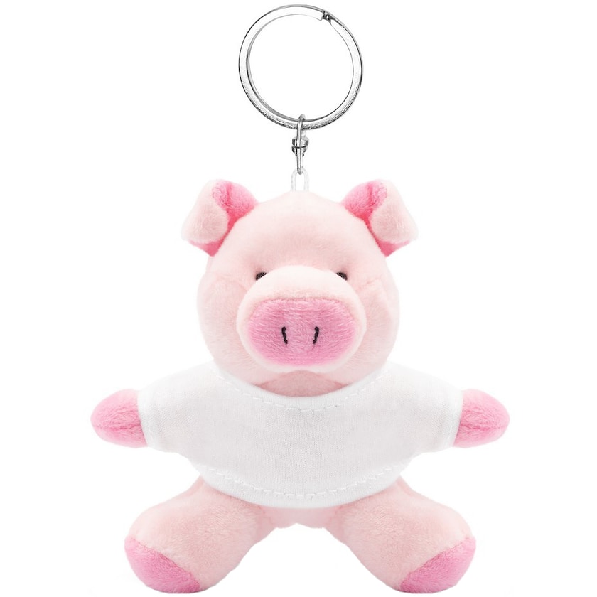 Un petit cochon avec porte-clé. La personnalisation est effectuée sur le T-shirt. Le T-shirt est livré séparément de la peluche.