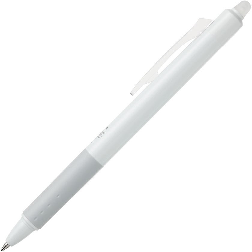 Stylo bille à encre effaçable. Le Pilot Frixion Clicker White écrit, efface, et écrit à nouveau, encore et encore. L'encre possède une technologie spéciale qui s'appuie sur la friction et est inusable.