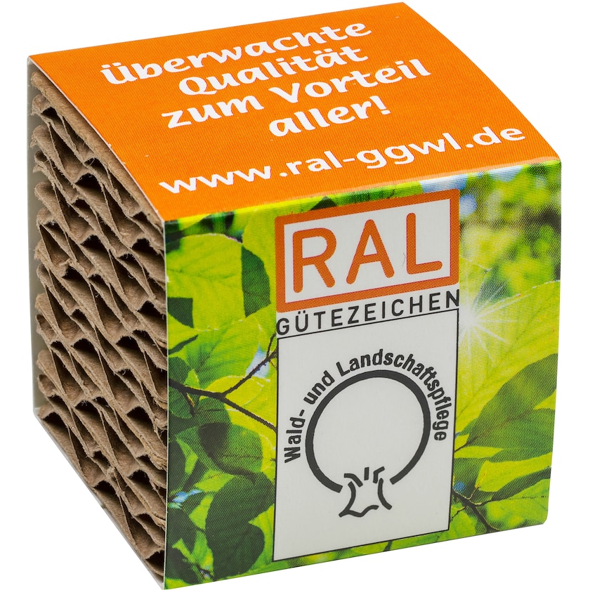 Pot en carton ondulé livré avec motte de terre et graines. Un bon choix écologique! L'impression est réalisée sur une bannière placée autour du pot.