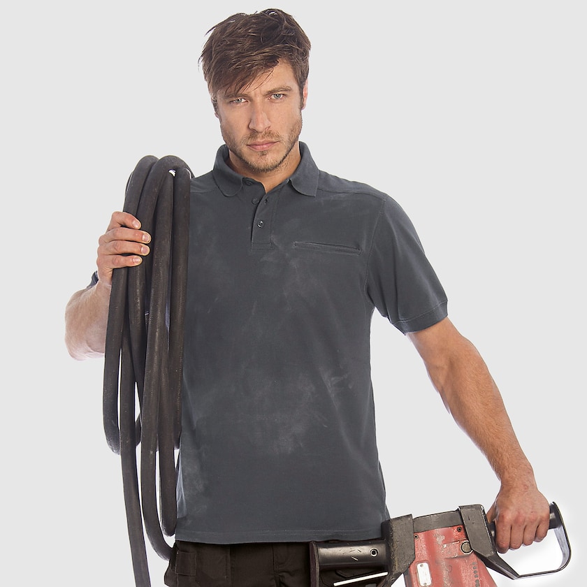 Polo en coton à usage professionnel. Le polo est fabriqué en coton résistant avec coutures renforcées. Le polo possède également une poche poitrine cachée. Voir fiche produit pour plus d'informations. Livré sous emballage plastique individuel. Commandez vos polos de travail personnalisés chez Axon Profil!