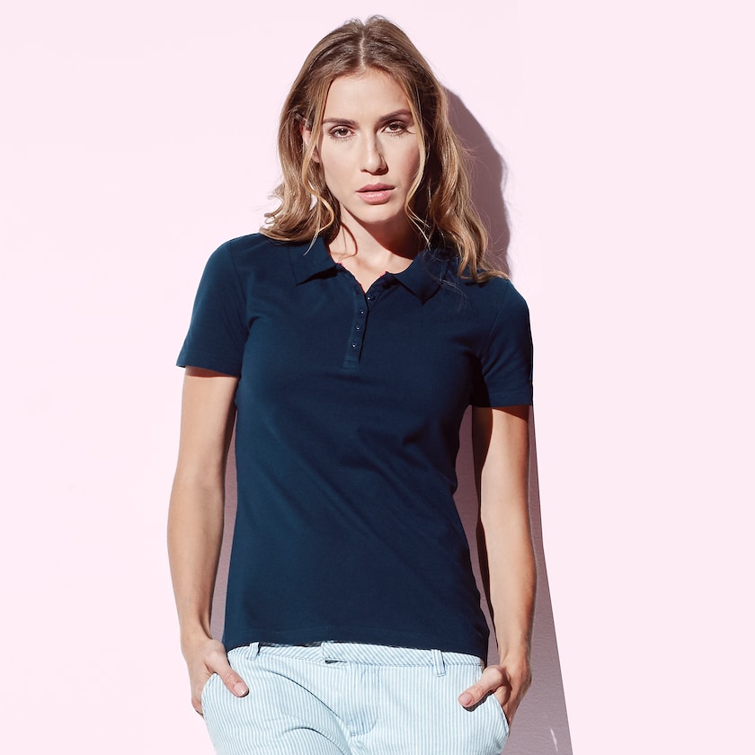Polo femme tendance avec cinq boutons au niveau du col. Le Stedman Hanna Polo est un polo moderne 100% coton. Livré sous emballage plastique individuel. Également disponible en version version homme.