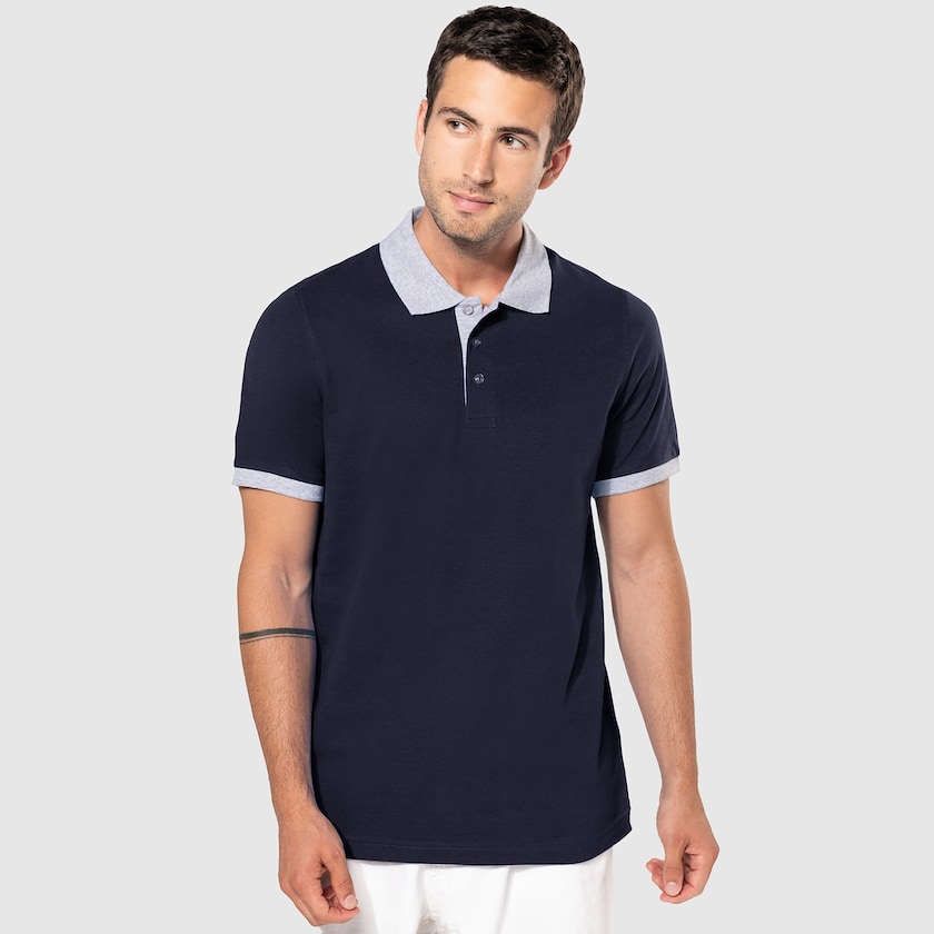 Beau polo design avec bande de couleur contrastante au niveau des extrémités des manches et du col. Le polo est 100% coton sauf la couleur oxford grey qui contient 10% de viscose. Livré sous emballage plastique individuel. Également disponible en version version femme.