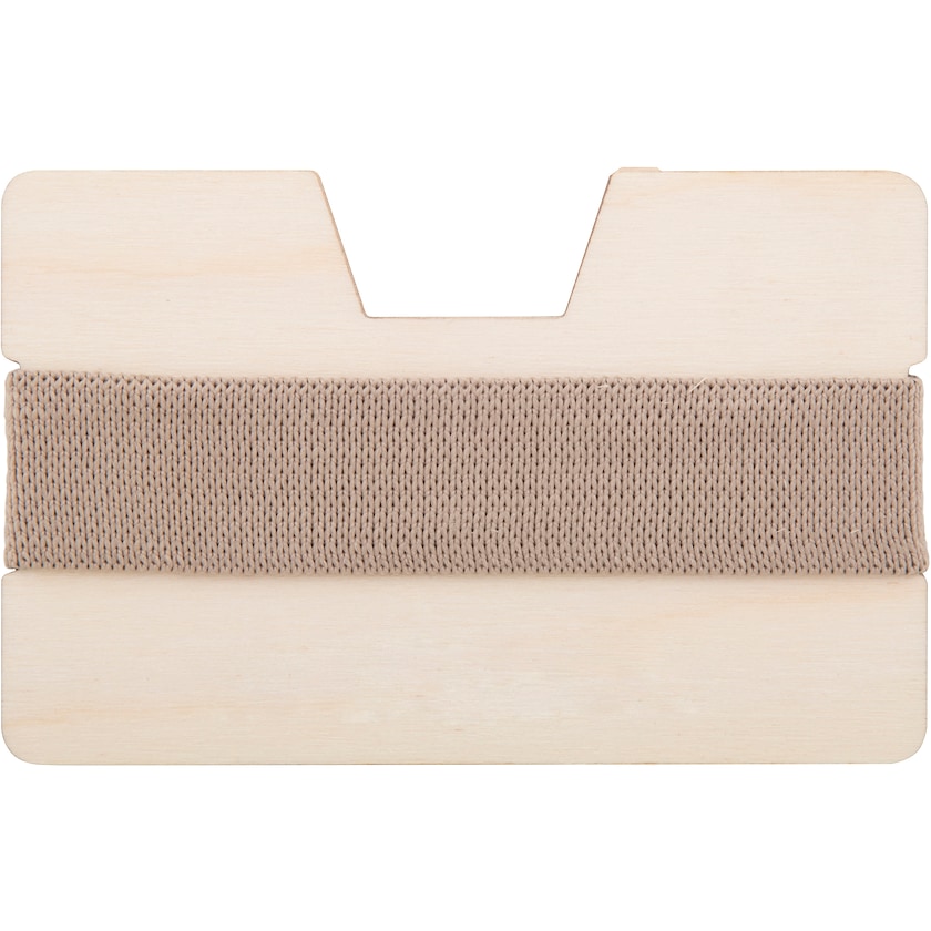 Porte-carte de crédit en bois véritable. La carte est maintenue en place par une bande élastique. Le naturel, c'est mieux!