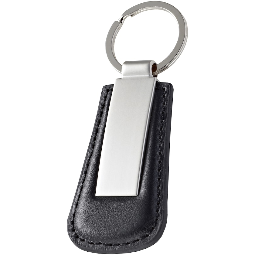 Porte-clé en cuir synthétique noir et métal. Le porte-clé Finley est livré dans une jolie boîte cadeau noire. Un porte-clé élégant à un prix attractif!
