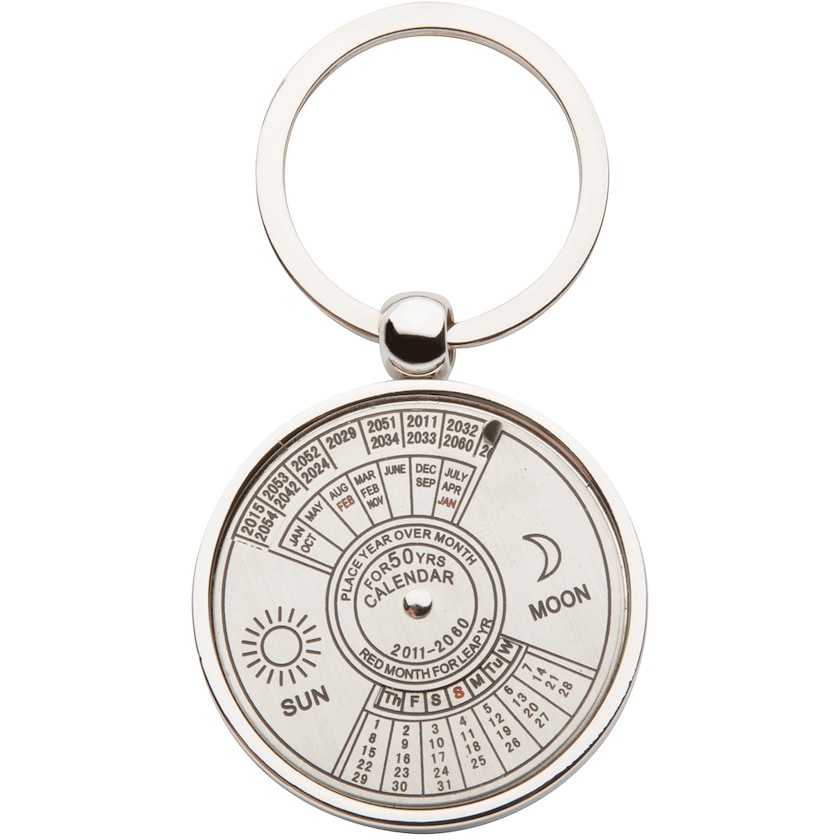 Porte-clé en métal avec calendrier rotatif. Le calendrier s'étend jusqu'à l'année 2060. Livré dans une boîte en carton noire. Un beau cadeau intemporel!