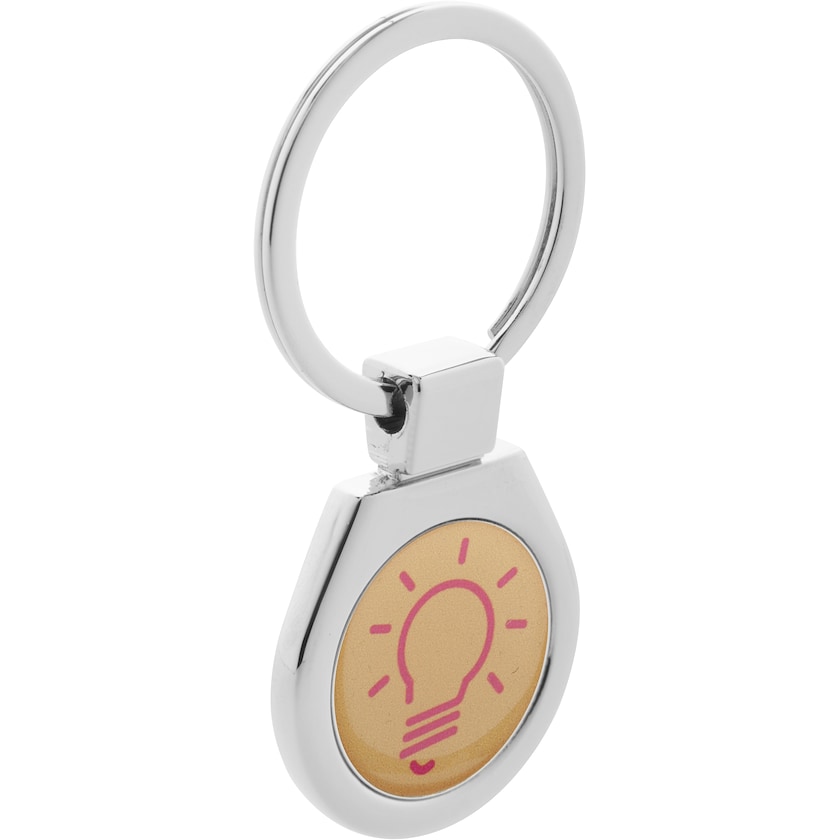 Porte-clé rond en métal avec impression en quadrichromie. Livré dans une boîte cadeau noire. Un porte-clé élégant avec une grande valeur marketing!
