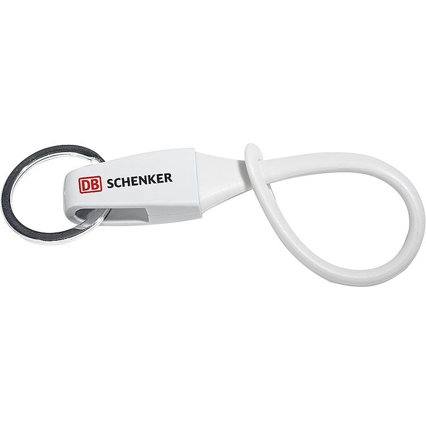 Porte-clé avec cordon de poignet en silicone. L'impression est effectuée sur la partie en plastique du porte-clé.