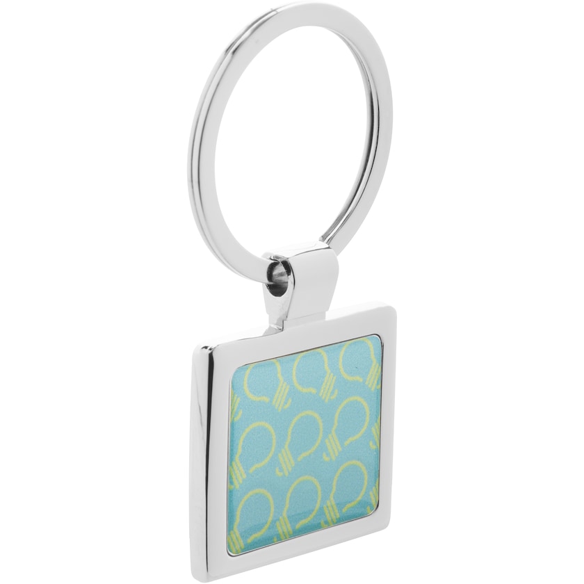 Porte-clé en métal carré avec impression en quadrichromie. Un beau porte-clé chromé avec une large surface d'impression. Livré dans une jolie boîte cadeau.