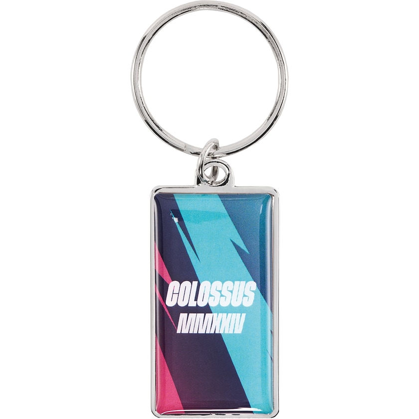 Porte-clés rectangulaire en métal avec impression numérique. L'impression est protégée par une couche d'époxy. Choisissez parmi les coloris métallisés or, argent ou bronze. Livrée emballée individuellement dans du papier de soie.