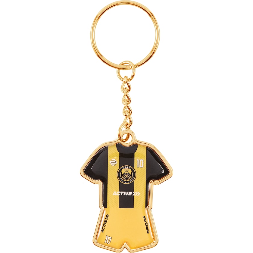 Porte-clés en chaîne conçu comme un kit de football. Ce porte-clés est en métal et est disponible en or, argent et bronze. Votre motif est imprimé numériquement et protégé par une couche d'époxy. Les porte-clés sont livrés emballés individuellement dans du papier de soie.