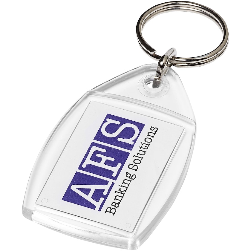 Porte-clés écologique de forme rectangulaire classique. Le Sullivan est fabriqué en GPPS, un matériau écologique. La personnalisation est réalisée en insérant un papier dans la coque en GPPS. Les deux faces du papier sont personnalisables, et les motifs peuvent être différents sur chaque face. Un porte-clés écologique personnalisable fabriqué en Europe.