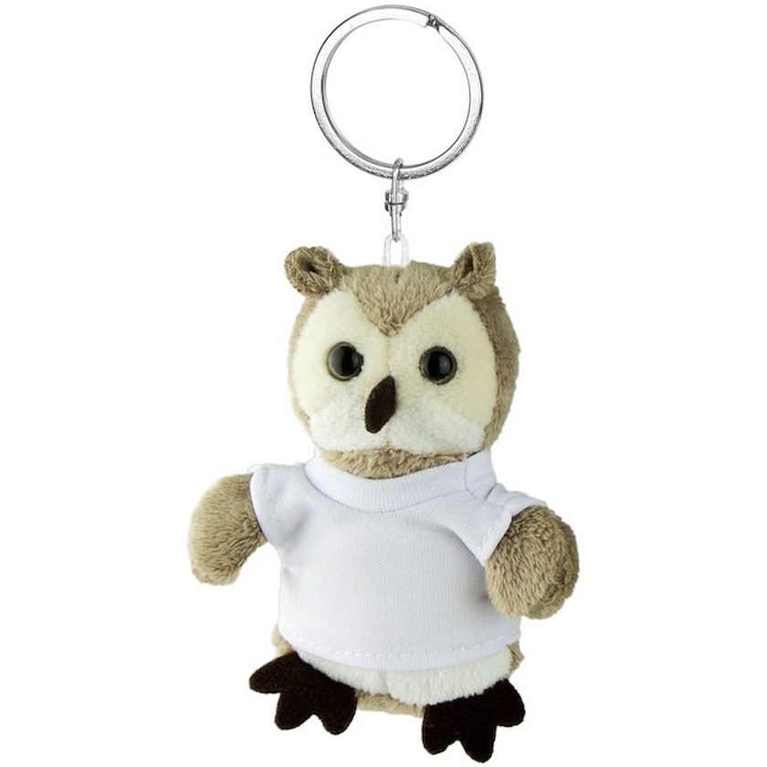 Un hibou sage avec un porte-clés. L'impression est réalisée sur le t-shirt du hibou.