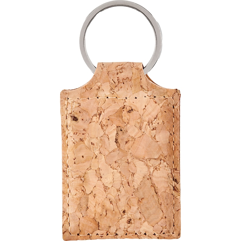 Porte-clé rectangulaire en liège. Votre logo est appliqué à l'aide d'une gravure laser. Le liège est un matériau naturel, l'apparence peut donc varier d'un exemplaire à l'autre.