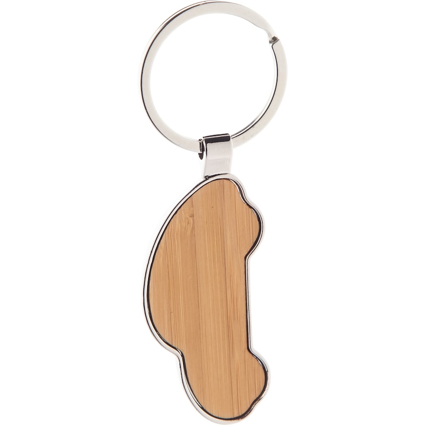 Porte-clés en métal et bambou en forme de voiture. Livré emballé individuellement dans une boîte en carton de couleur naturelle.