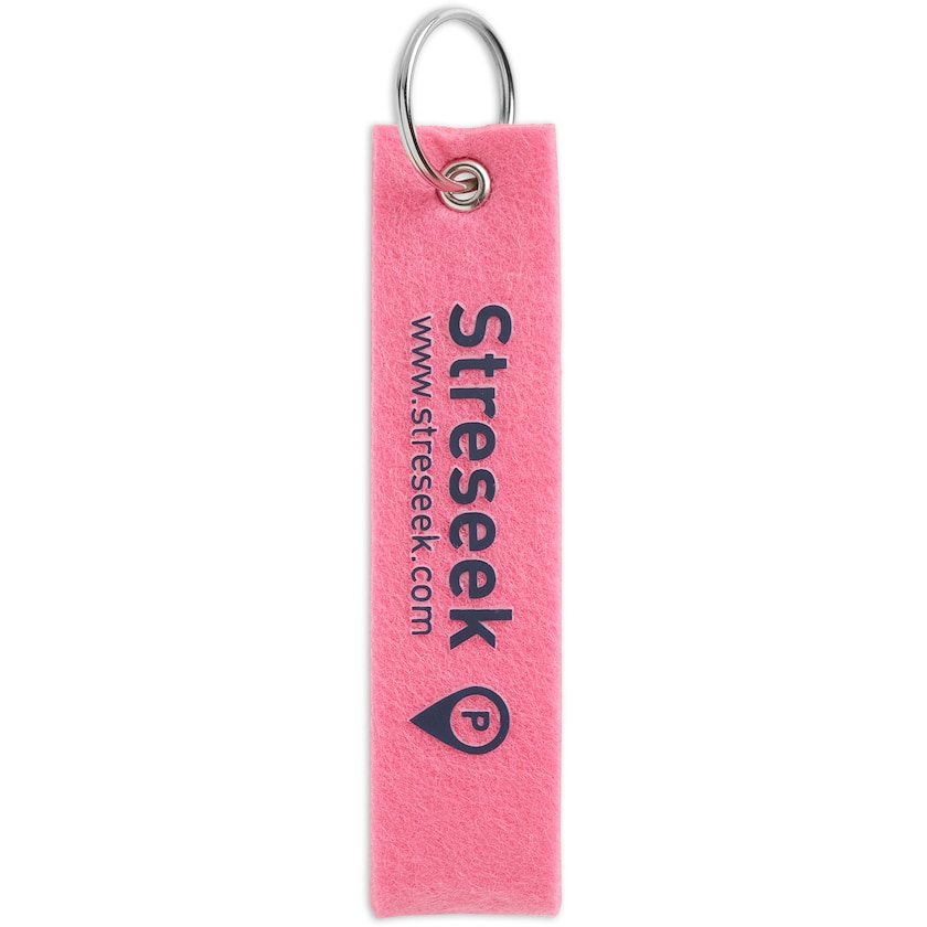 Porte-clés avec grand patch en feutre de la couleur de votre choix. Le patch en feutre mesure 130 x 20 mm, l'anneau porte-clés possède un diamètre de 30 mm. Le patch en feutre est disponible en 50 couleurs standard différentes. Indiquez simplement la couleur PMS souhaitée, nous ferons en sorte de la faire correspondre à la couleur standard la plus proche. Impression monochrome uniquement.