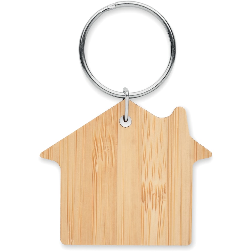 Porte-clés en forme de maison en bambou véritable. Idéal pour les sociétés immobilières ou les agents immobiliers.