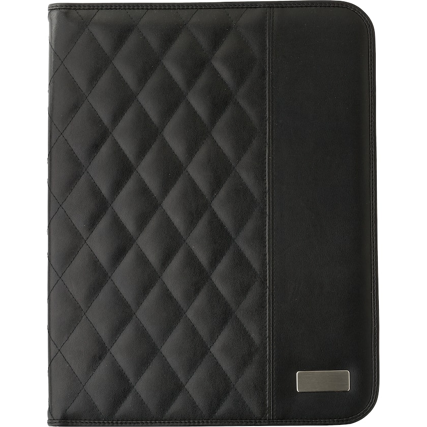 Chemise de conférence somptueuse avec couverture en similicuir. A l'intérieur, il y a un bloc-notes de 25 feuilles lignées et plusieurs poches et porte-stylos. Le marquage est réalisé par gravure laser sur la plaque métallique située sur le devant du dossier de conférence.