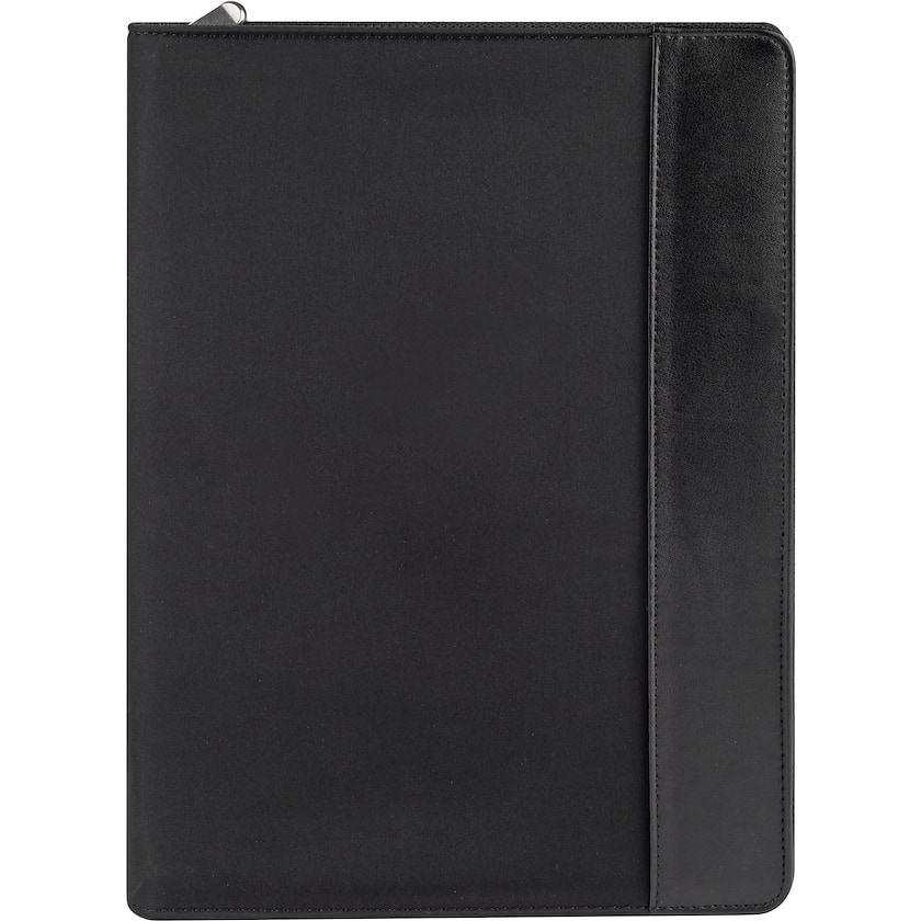 Porte-documents au format A4 avec fermeture éclair. À l'intérieur se trouvent deux porte-clés USB, une petite poche de rangement, un porte-stylo bille et un bloc-note. Le bloc-note est détachable et peut donc être remplacé lorsqu'il est terminé.