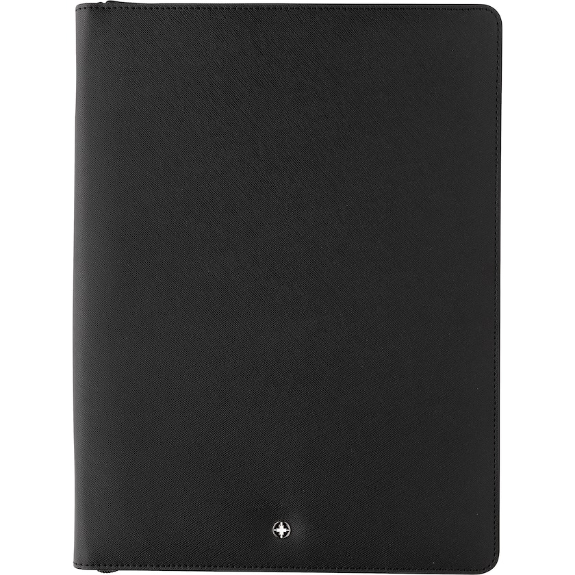 Porte-documents écologique Swiss Peak. Ce porte-documents est fabriqué en polyuréthane recyclé. À l'intérieur, un bloc-note de 20 feuilles lignées en papier de pierre écologique.