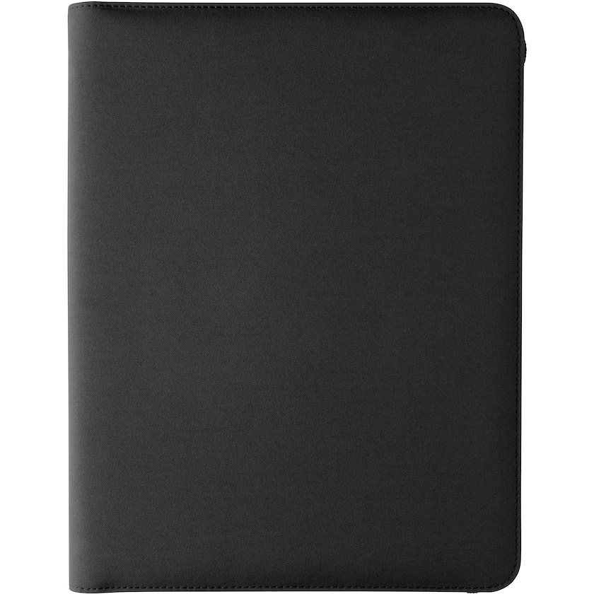 Porte-documents haut de gamme en polyester recyclé. À l'intérieur, le porte-documents contient un bloc-note de 20 pages lignées en papier recyclé ainsi qu'une poche pour mobile, des poches pour cartes de visite et d'autres poches et compartiments malins. Le porte-documents est maintenu fermé à l'aide d'une fermeture éclair.