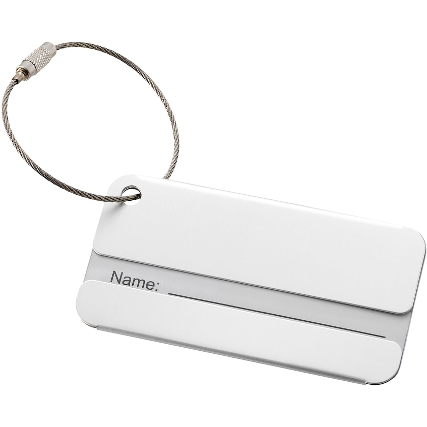 Élégant porte-étiquette pour bagage en aluminium. Le marquage s'effectue par gravure laser.