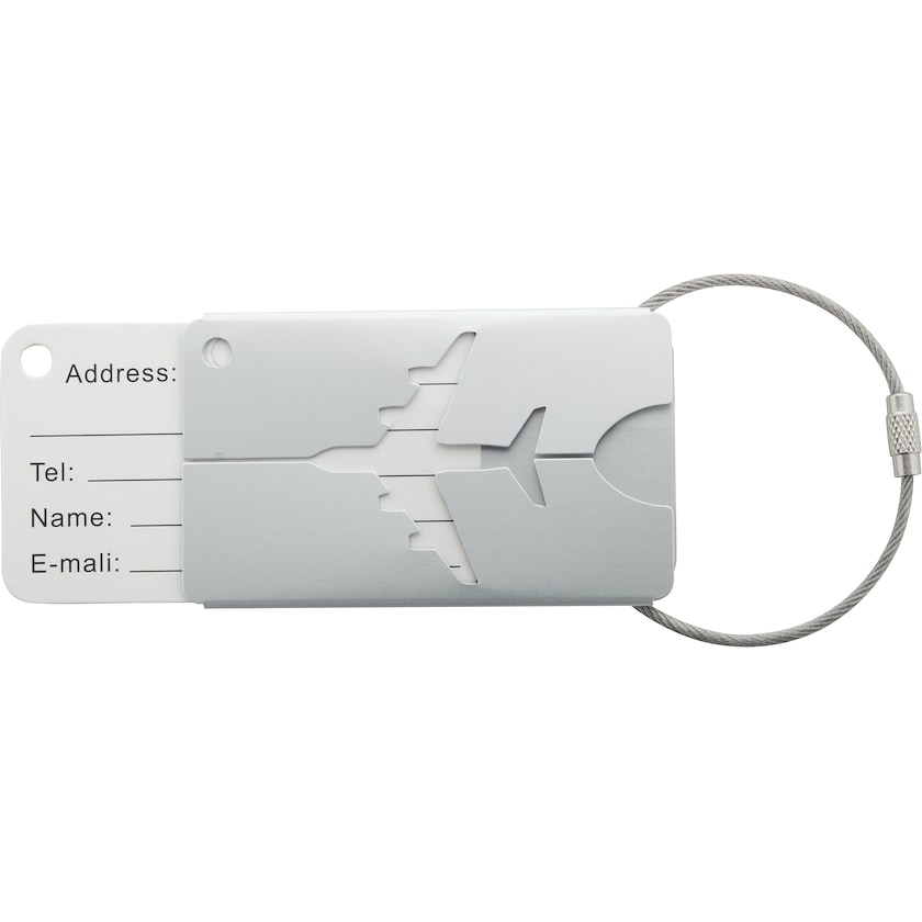 Plateau à bagages en aluminium conçu comme un avion. Le marquage se fait par gravure laser.