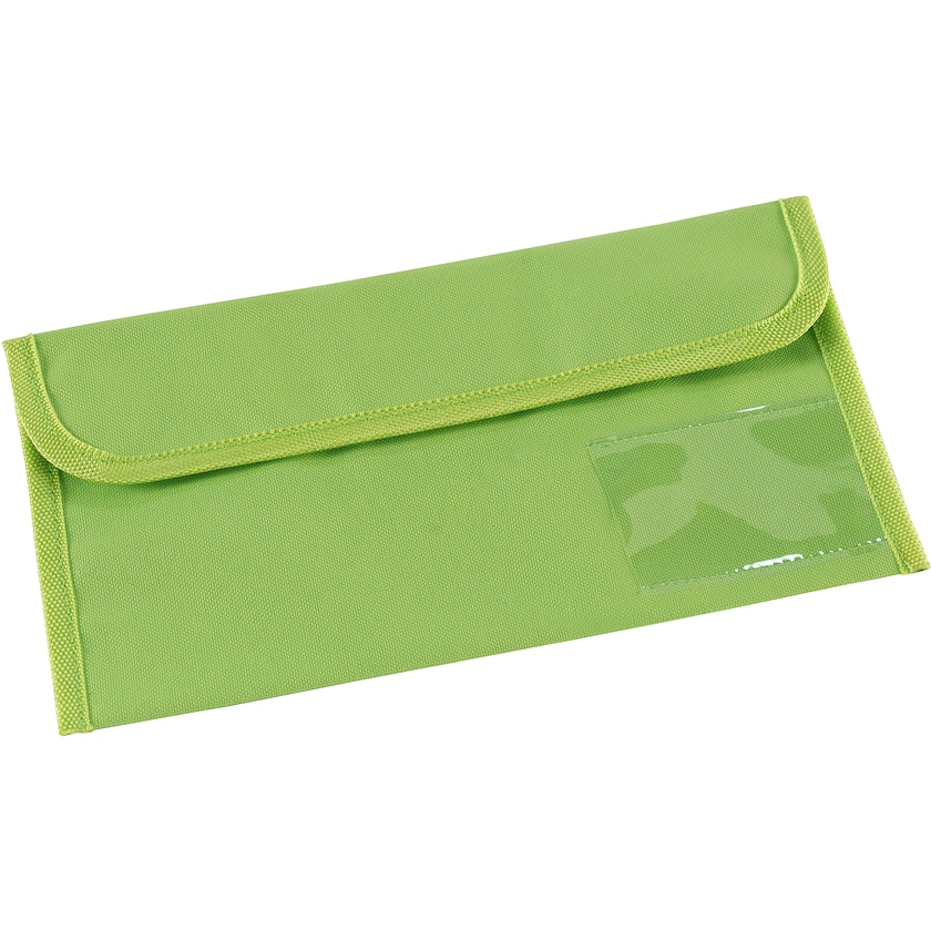 Portefeuille de voyage avec poche à fenêtre maligne sur le devant. Il comprend deux poches de rangement pour les tickets et autres documents de voyage.