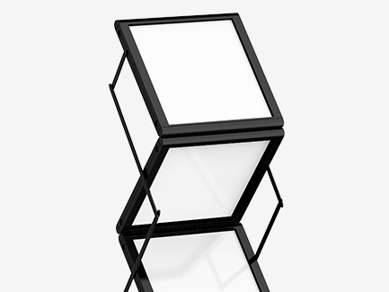 Nos présentoirs à brochures sont disponibles en plusieurs tailles, modèles et fonctions. L'un de nos porte-brochures les plus vendus est le Flex Black Suitcase, un présentoir en aluminium noir livré dans une mallette robuste. Ce porte-brochures double face offre de nombreux compartiments et est très facile à monter.
