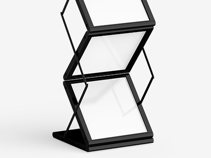 Notre porte-brochures populaire de la série Flex est double face. Cela signifie qu'il comporte des compartiments de chaque côté, optimisant ainsi la visibilité de vos brochures.