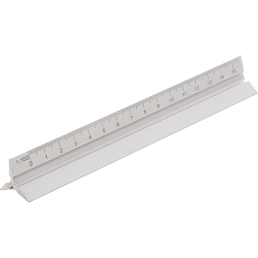 Règle à échelles 15 cm avec 5 échelles différentes. La règle propose les échelles suivantes : 1:20, 1:25, 1:50, 1:75 et 1:100. L'un des côtés est vierge et peut être personnalisé par impression ou par gravure laser.